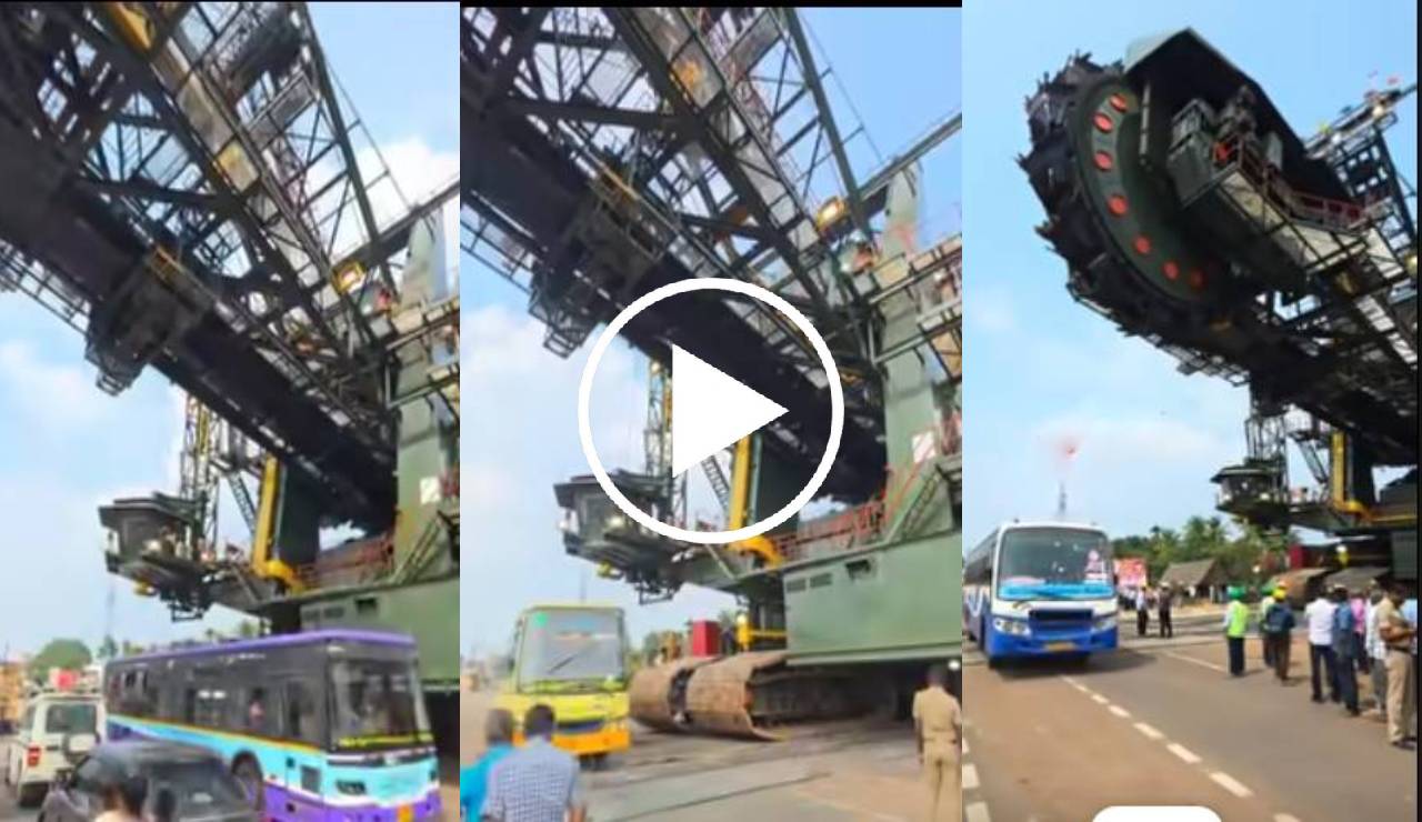 இந்நிலையில், பராமரிப்பு அல்லது இடமாற்றத்திற்காக சாலை வழியாக ஒரு ராட்சத இயந்திரம் கொண்டு செல்லப்பட்டதாகத் தெரிகிறது. அப்போது அந்த இயந்திரத்தின் பிரம்மாண்டமான உயரத்திற்கு அடியில்,